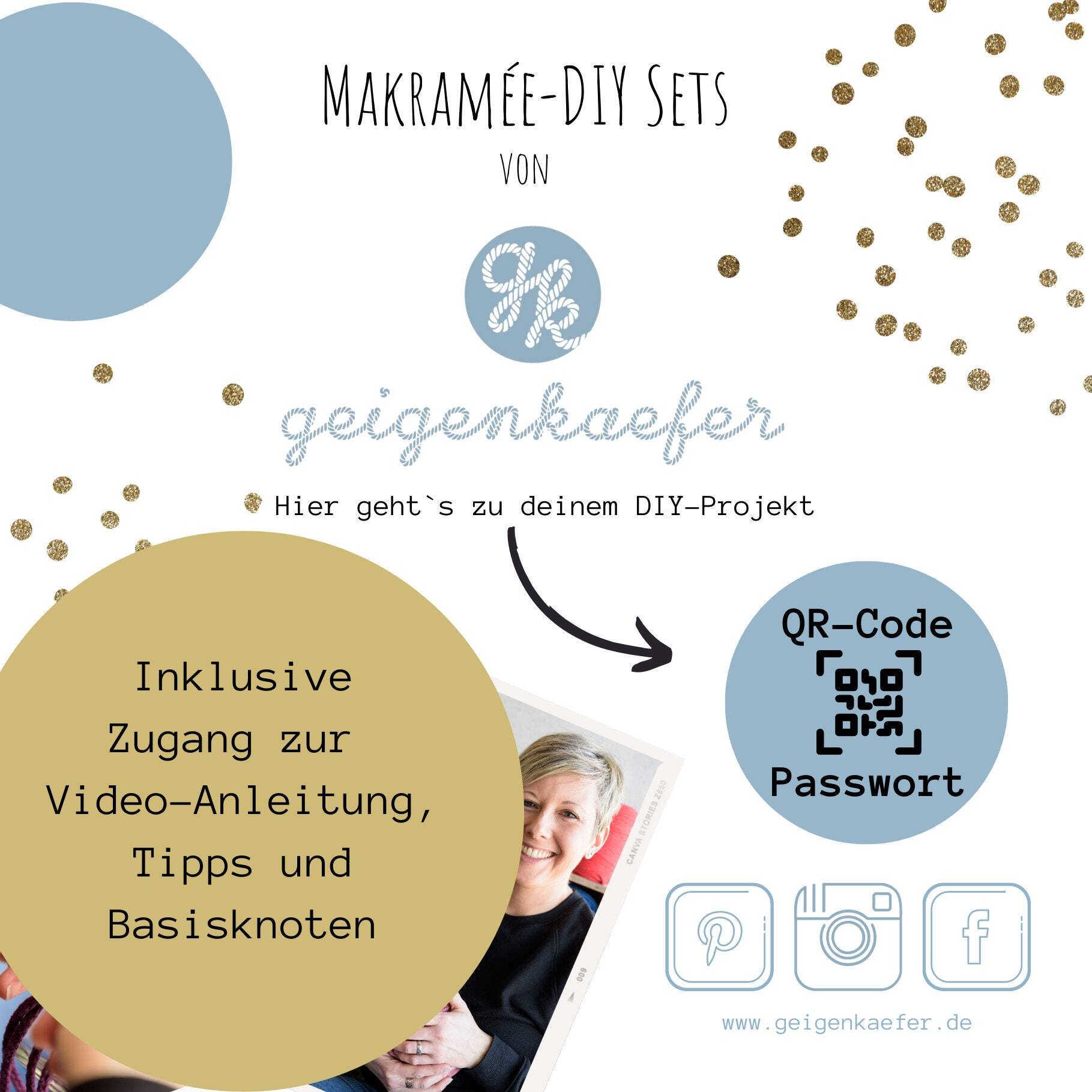 – einen QR-Code und ein Passwort mit Zugang zum Video-Tutorial des Wandbehangs