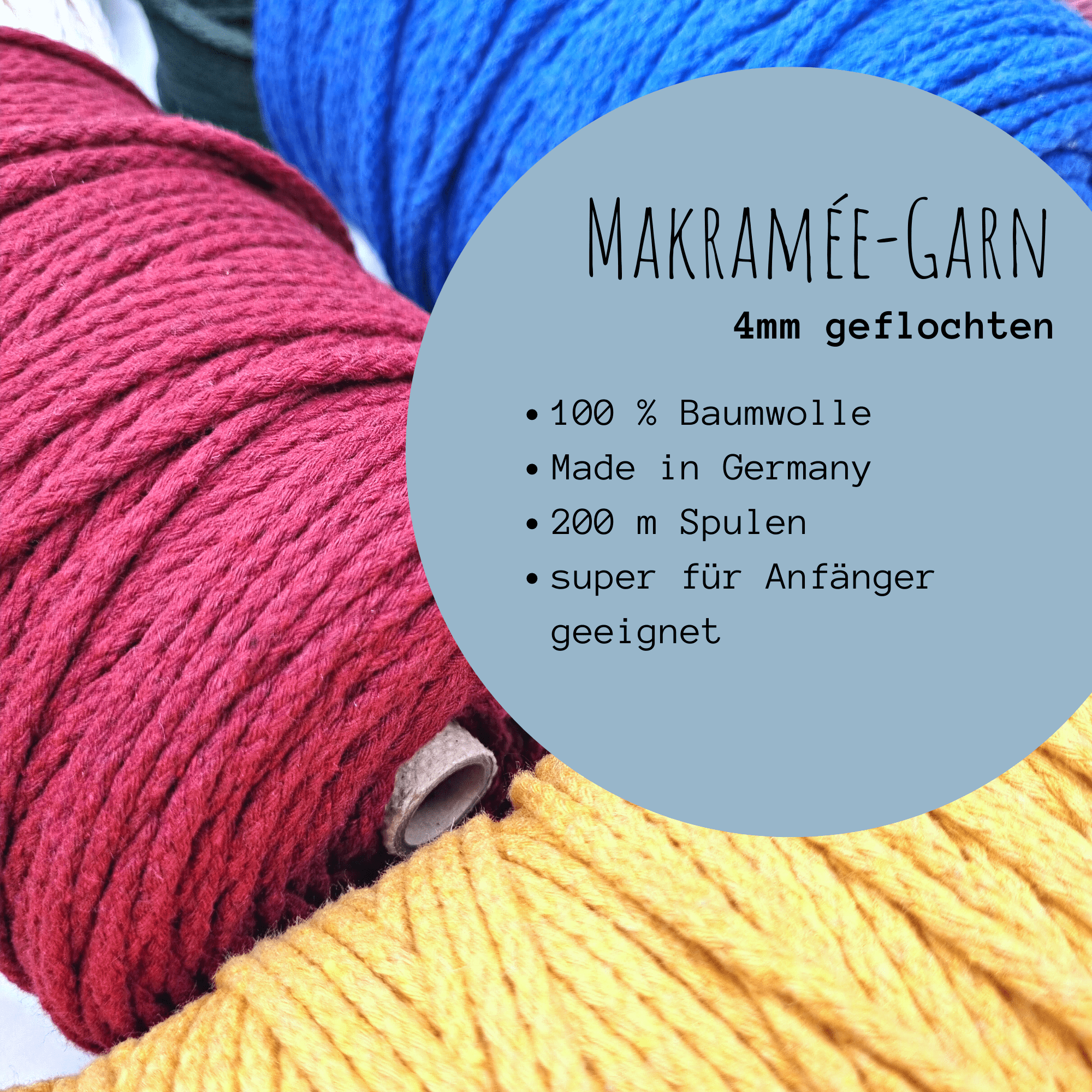 Ich habe viele Garne getestet und verwende seit einem Jahr genau dieses Makramée Garn 4mm geflochten in all meinen Workshops. Das geflochtene Garn eignet sich super für Anfänger und Kinder.