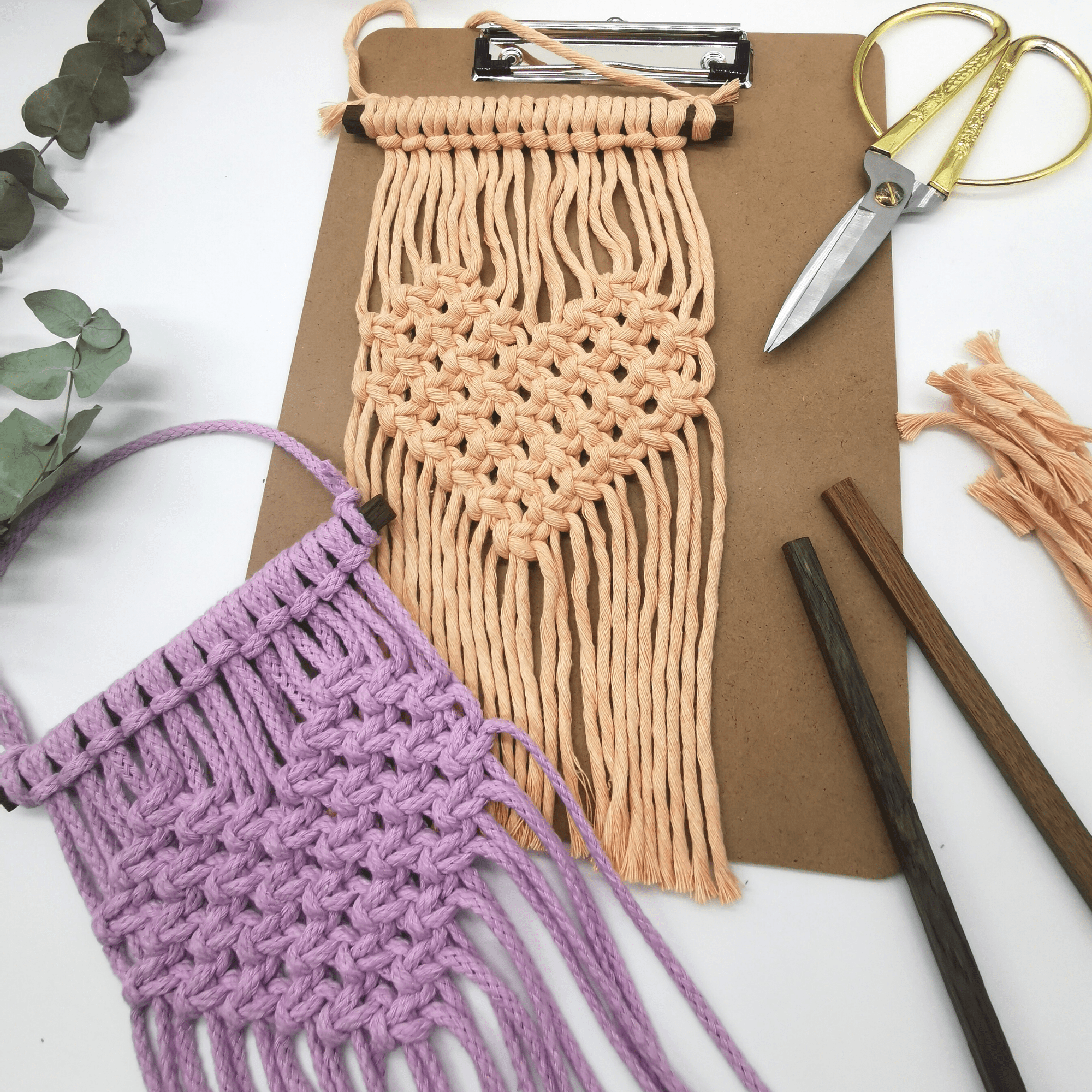 Makramée lernen ganz leicht gemacht. Mit dem Komplett-Set knüpfst du ganz leicht dein eigenes Makramée Herz als Wandbehang oder Untersetzer.