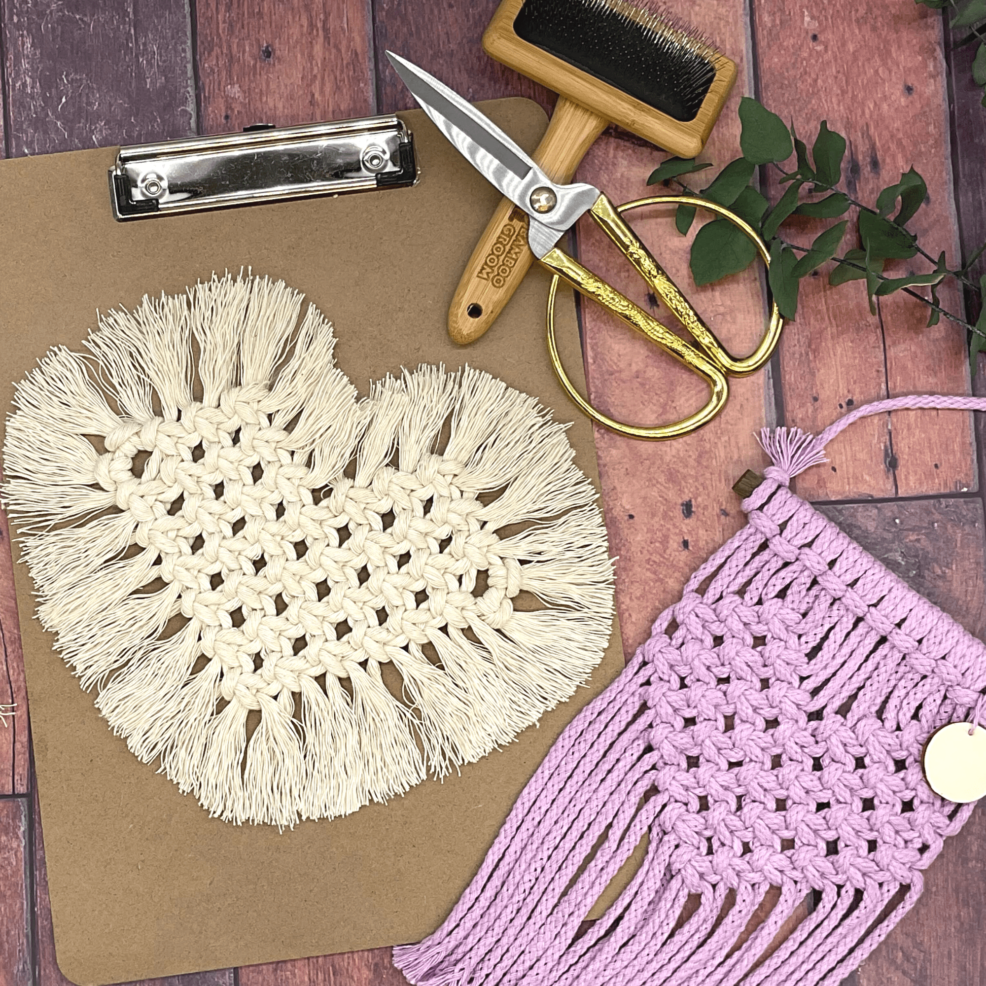 Ein schönes selbstgemachtes Geschenk für Mama zum Muttertag – Herz Makramee Wandbehang, Herz-Untersetzer zum selber knüpfen