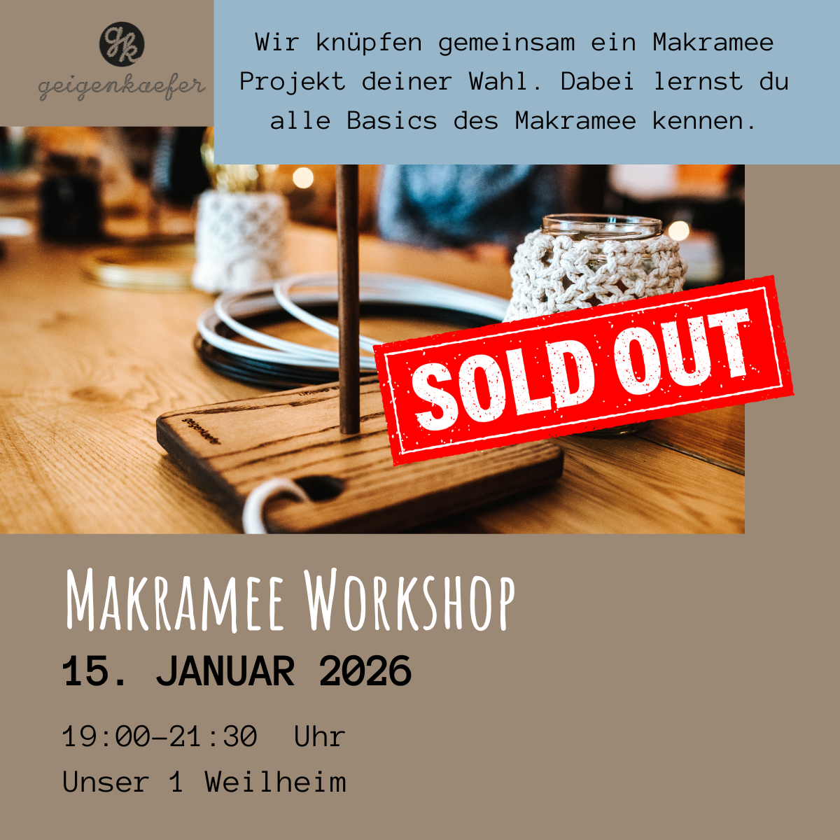 Entdecke die entspannende Kunst des Makramee-Knüpfens! In diesem Workshop lernst du die wichtigsten Grundknoten und erfährst, wie du daraus dein eigenes Makramee-Stück gestalten kannst – z. B. einen Wandbehang, einen Schlüsselanhänger, ein Windlicht oder eine Blumenampel.