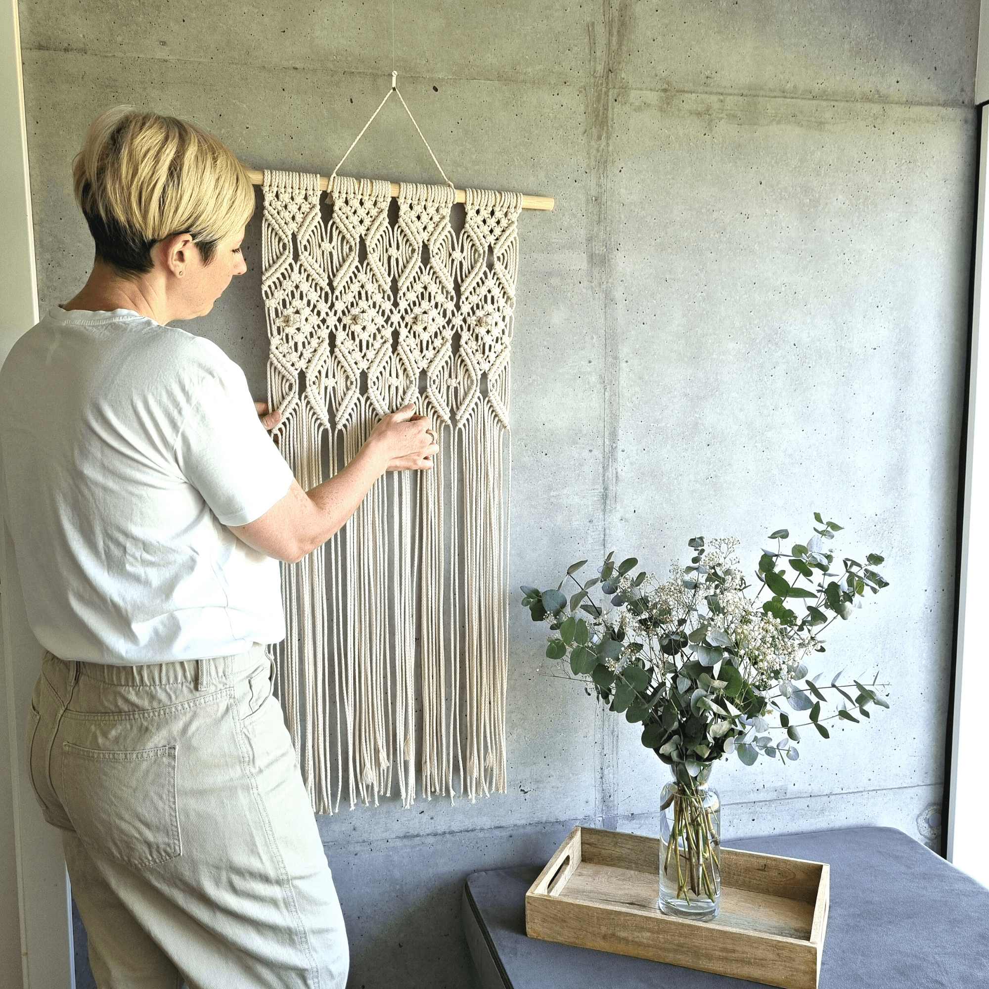 Der Wandbehang ist ein mittelgroßes Projekt und daher bestens für Kreative mit ersten Makramée-Erfahrungen geeignet.