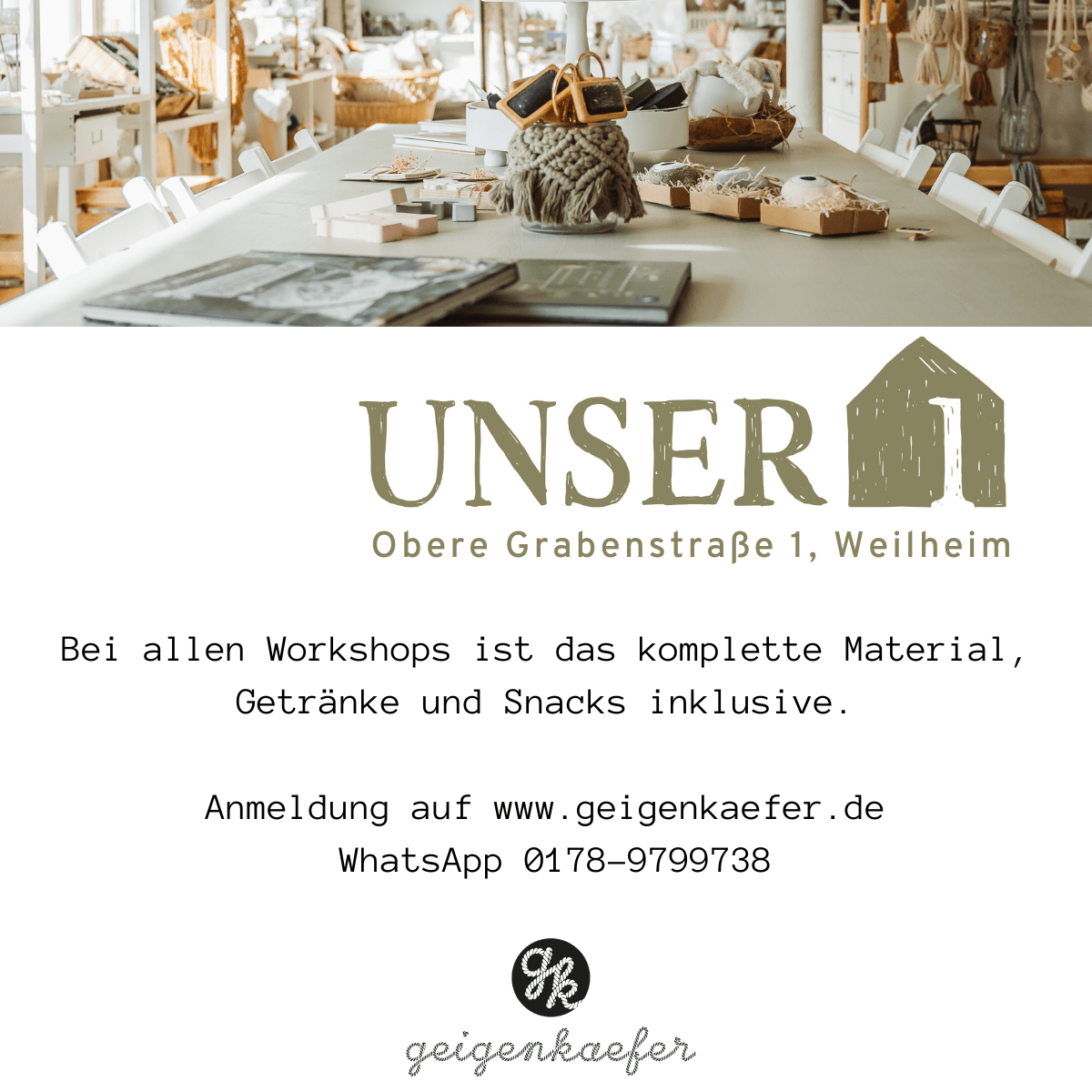 Unser1 ist mehr als ein Laden – es ist ein Ort für Ideen, Kreativität und echtes Handwerk. Der perfekte Rahmen, um selbst aktiv zu werden.