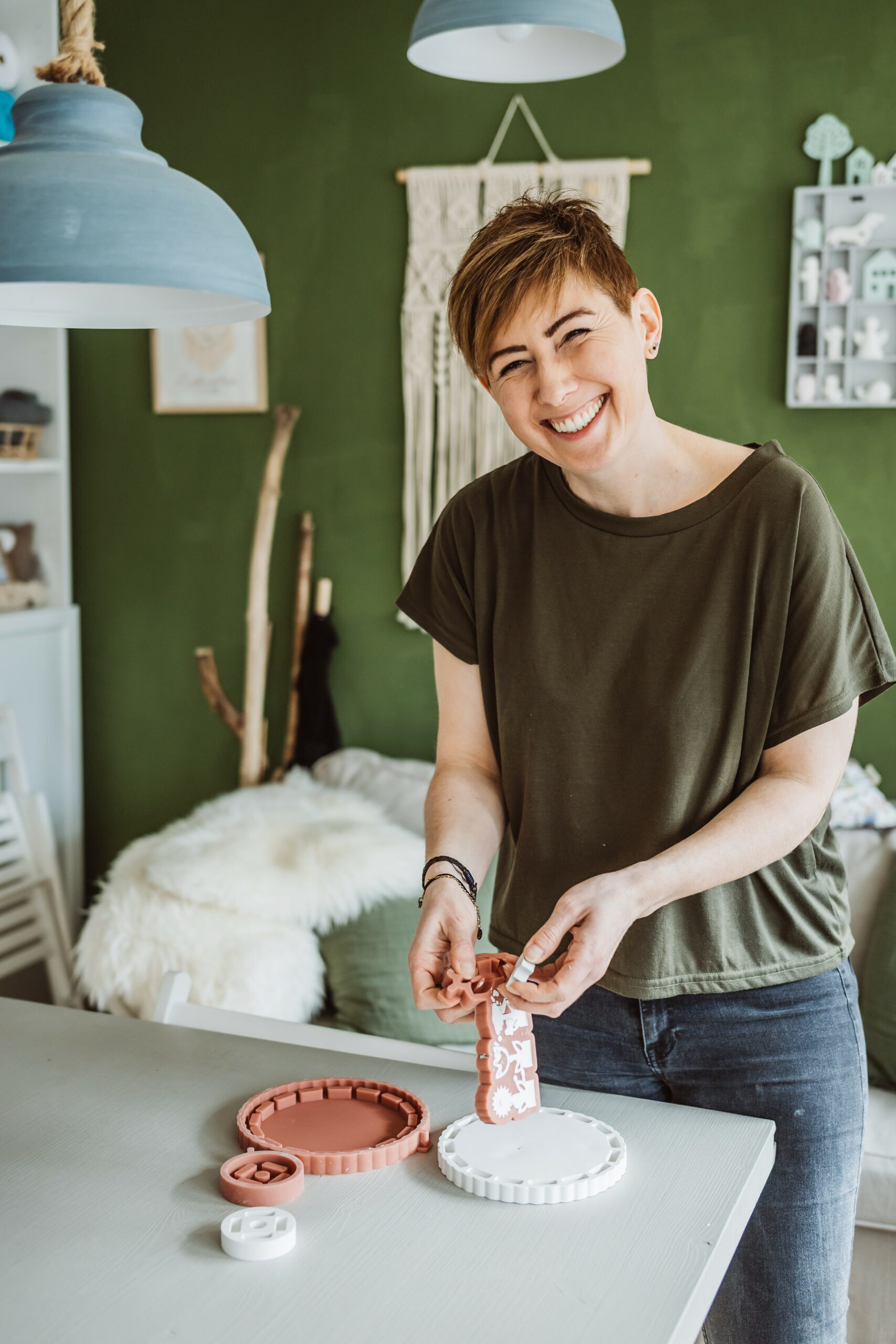 Ich bin Dani, (zusammen mit meiner Kollegin Gudrun) die Inhaberin des Unser1 und Gründerin des Labels Geigenkäfer. Kreatives Gestalten begleitet mich schon seit meiner Kindheit – vom Häkeln über Sticken bis hin zum Makramee.